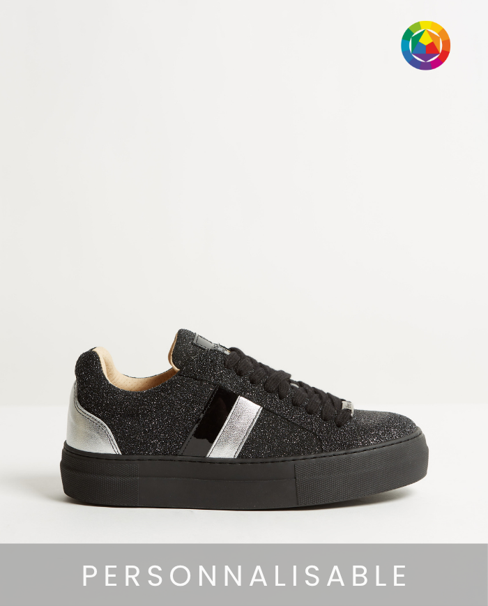 Baskets avec lacets et 2 bandes de cuir sur le côté. Vous pouvez entièrement la personnaliser avec un choix de plus 450 cuirs !