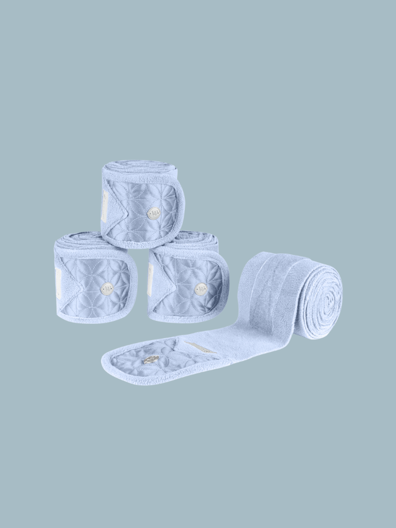 Bandages en polaire de haute qualité en polaire 380g/m² anti-boulochage. Avec un détail floral sur la fermeture velcro et une plaque métallique de couleur argentée. Assorti à la collection Rom.