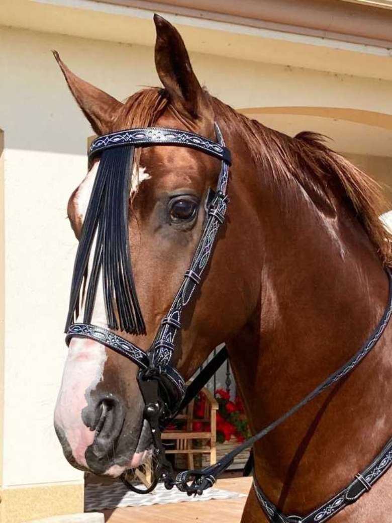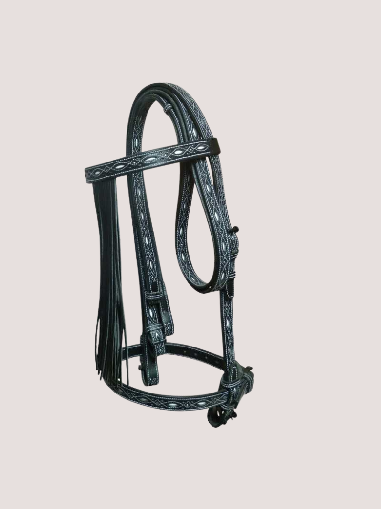 Bridon en cuir de fabrication artisanale, entièrement fait main.