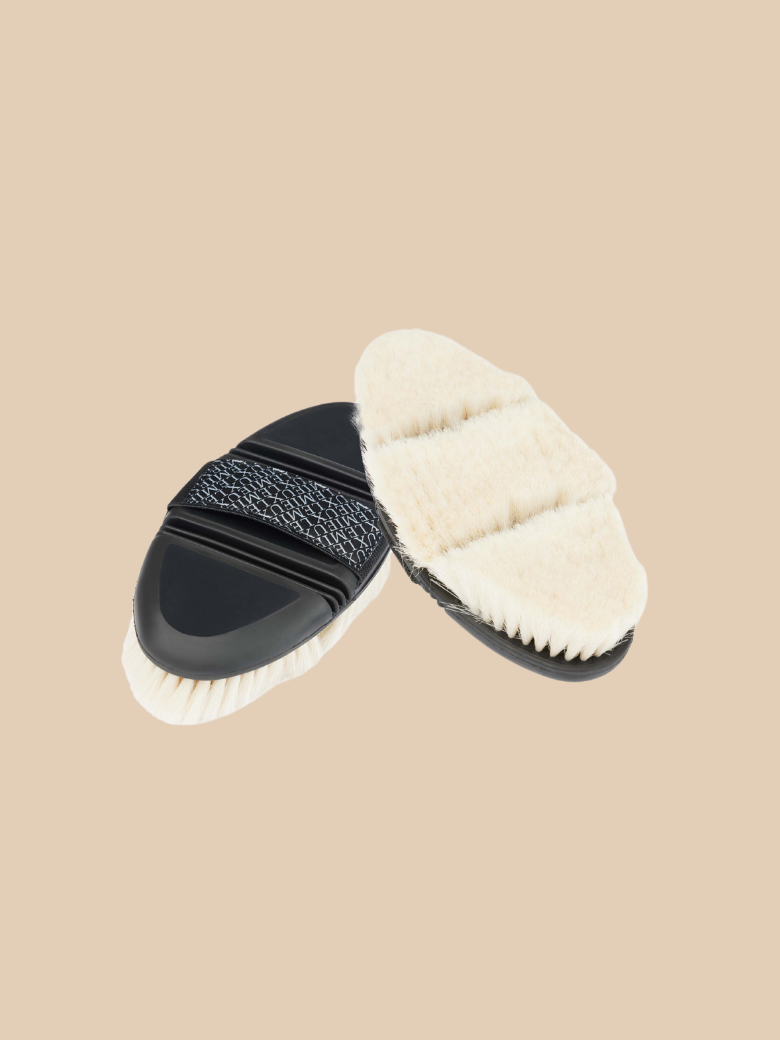 Les poils de chèvre les plus doux en font l’accessoire idéal pour les chevaux tondus ou à la peau sensible, tandis que la conception flexible permet d’atteindre presque toutes les parties du corps du cheval.