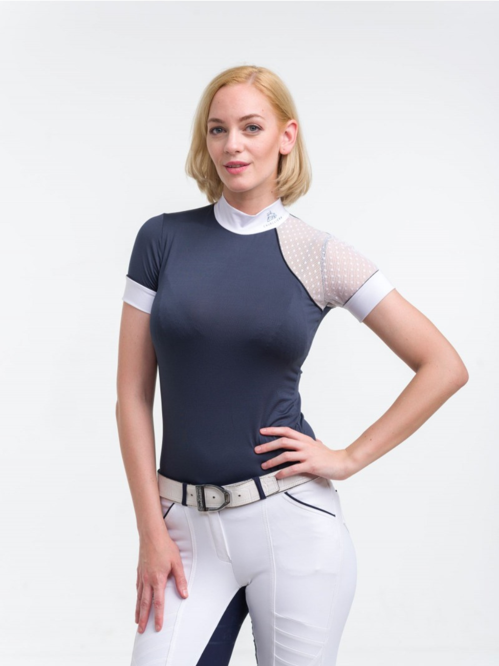 Manche en dentelle avec petit pois et liseré d'un côté.