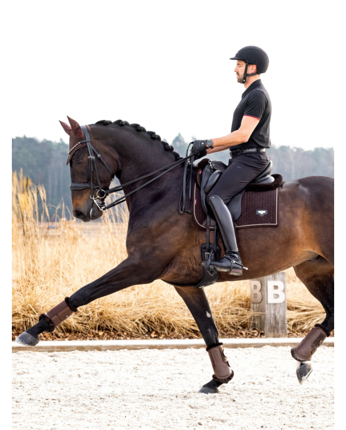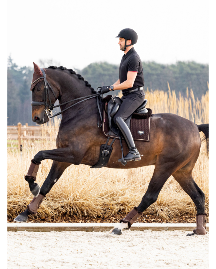 Avec son nouveau look sportif et son double cordon sophistiqué, le tapis Square Dressage Puissance en suédine offre le meilleur du confort et du style.