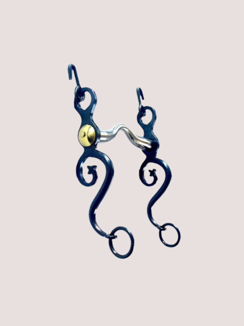 Mors de fabrication artisanale, existe en différents matériaux, mesures, et différente embouchures. Les boutons sont en laiton jaune.