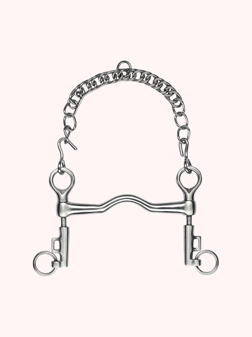 Mors de bride à pompe en inox satin, canon avec léger passage de langue. La dissociation du canon et des branches permet au cheval de jouer avec son mors.