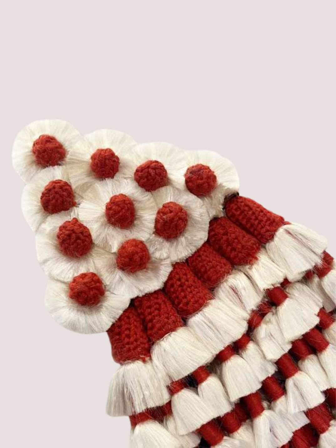 Mosquero effet soie, très fin. Les liens sont en laine de couleur.