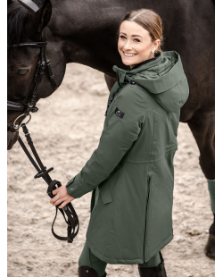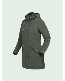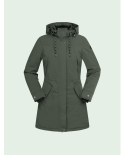 Largeur réglable à la taille, rembourrage sur toute la longueur, imperméable à 5 000 mm, respirant 3 000 g/m2/24h, coupe-vent, capuche amovible, capuche avec cordon de serrage et logo fixée au niveau du col. Visi!re de capuche repliable, col haut, poche intérieure.