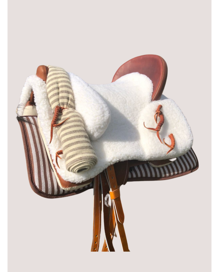 Quand on monte sur la selle, elle s’adapte, tout va bien, notre poids est réparti sur le dos du cheval. On peut ajuster la sangle facilement...
