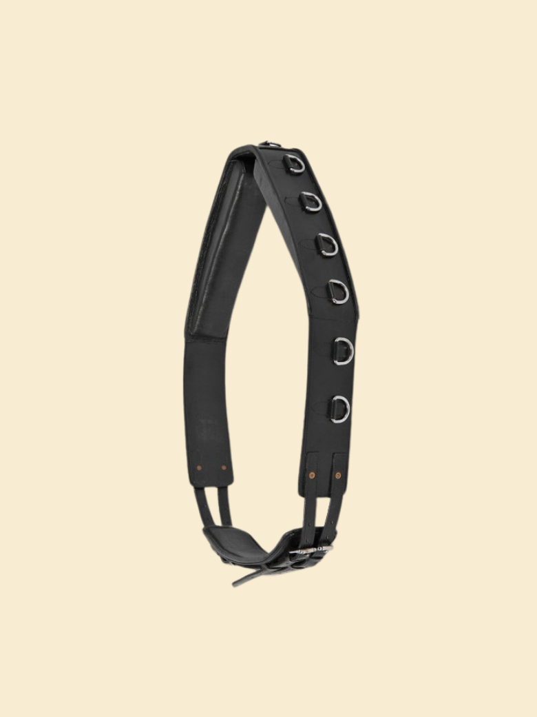 Surfaix en cuir avec 13 anneaux pour la présentation individuelle, approprié également pour le travail avec la longe double. Matelassure douce. Anneaux en inox.