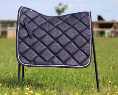 Tapis de selle anatomique fait en tissu étincelant en extérieur, avec cordelette décorative.