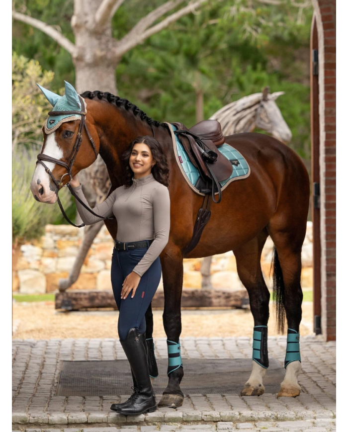 Associez votre tapis mixte en effet satiné à un bonnet anti-mouches Square Loire Classic Aqua pour compléter votre look.