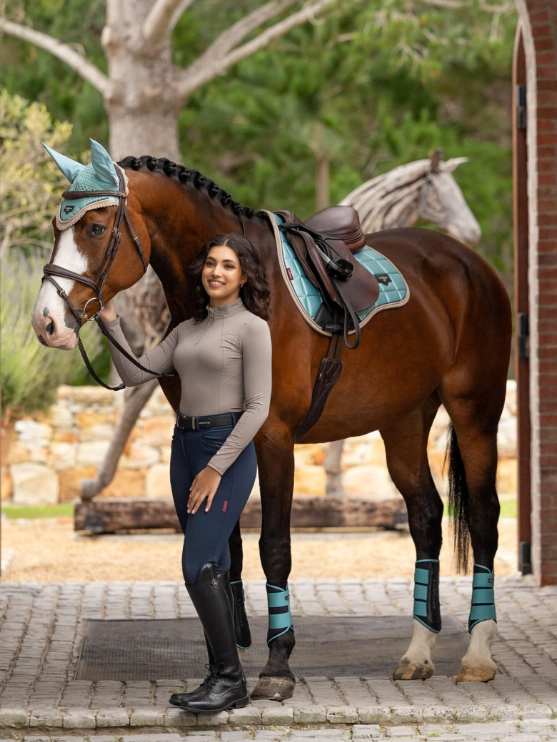Le satin tissé apporte un bel éclat à ces tapis de selle. La doublure intérieure en mélange de bambou naturel respirant absorbe et contrôle la transpiration sous la selle et permet un séchage rapide.